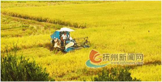 近日,南豐縣太和鎮(zhèn)店前村金色的稻田里,農(nóng)民正在使用收割機(jī)收割中稻。入秋以來(lái),該縣11.7萬(wàn)畝中稻相繼成熟,當(dāng)?shù)剞r(nóng)民抓住晴好天氣,加緊搶收,確保顆粒歸倉(cāng)。
