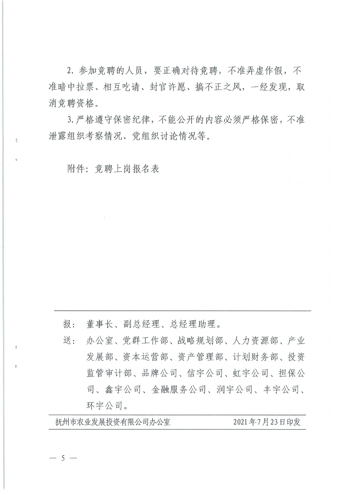 關(guān)于印發(fā)《撫州市農(nóng)業(yè)發(fā)展投資有限公司總部兩個部門正職競聘上崗實施方案(試行)》的通知