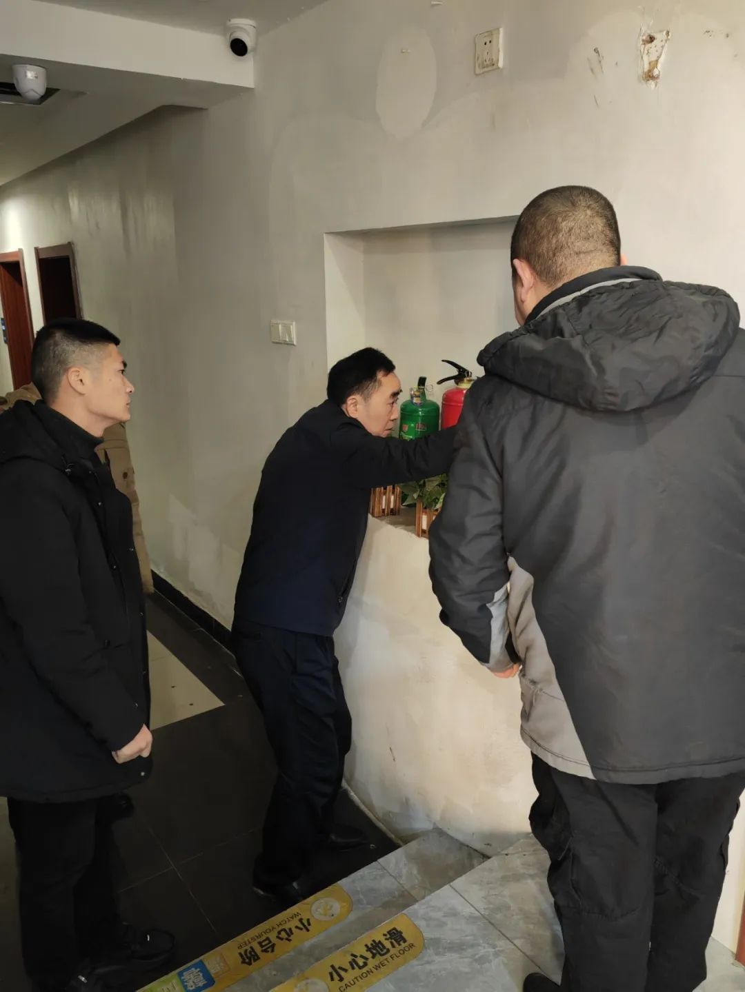 在興林公司所屬賓館檢查時,胡建軍逐層檢查安全出口是否暢通,滅火器、噴淋頭等消防設施是否完備有效,登上房頂查看有無違章搭建。他強調,賓館是人員密集的重點場所,興林公司要切實加強房屋質量安全管理,立即督促賓館經營方完善安全標志標牌,定期開展隱患排查治理,堅決確保賓館運營安全零風險。