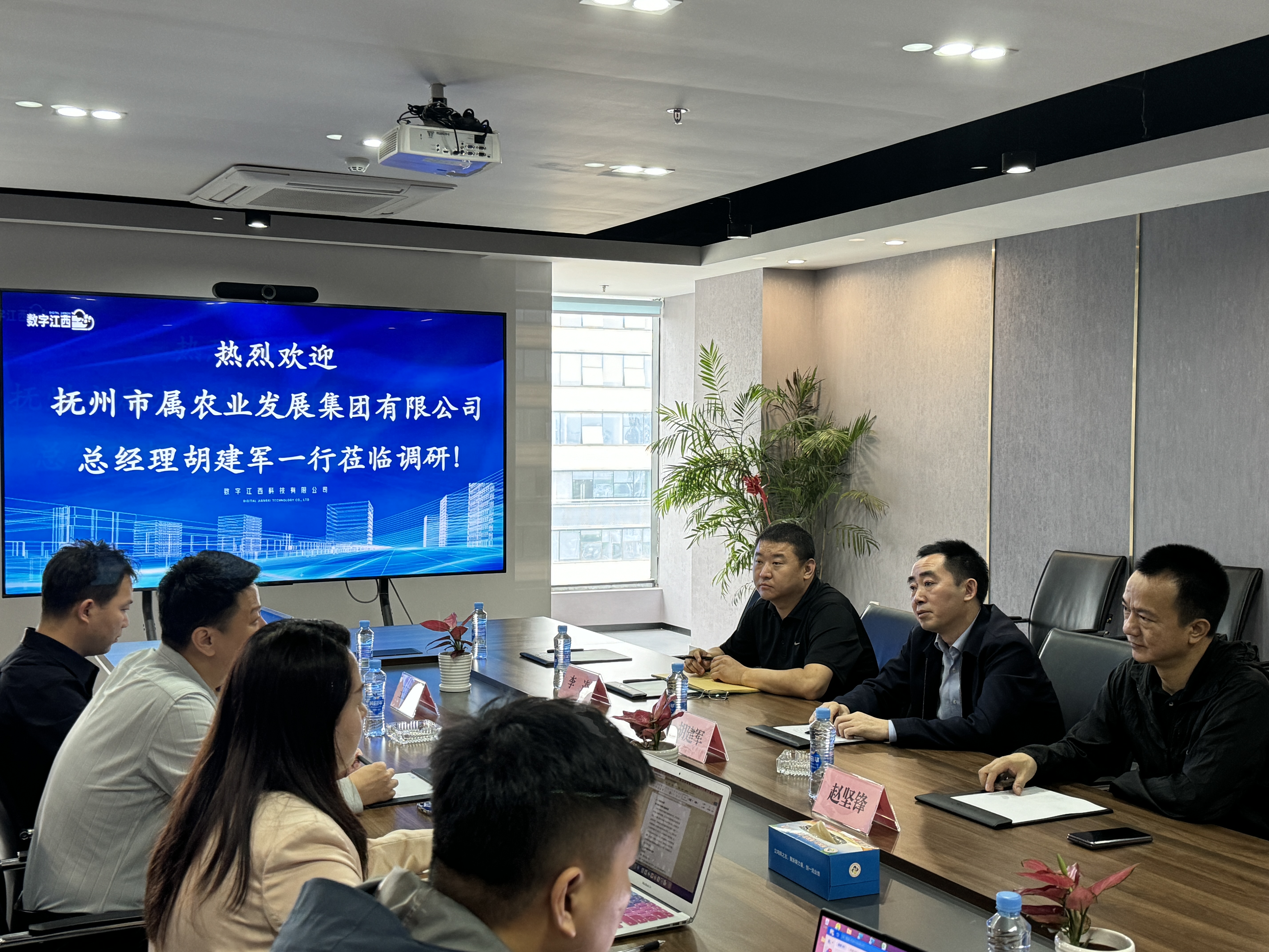 近日,市農(nóng)發(fā)集團總經(jīng)理胡建軍率隊赴數(shù)字江西科技信息有限公司調(diào)研。數(shù)字江西科技信息有限公司總經(jīng)理馮晶晶、運營總監(jiān)王正坤、金融業(yè)務(wù)負責人阮建成參加座談。